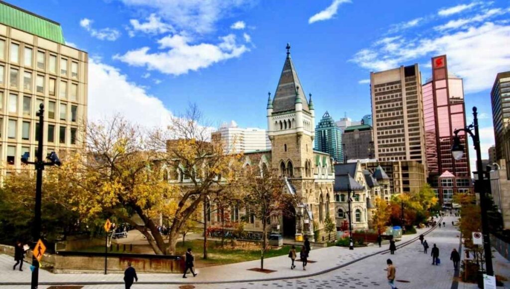 - Urban campus with residential halls and student centers